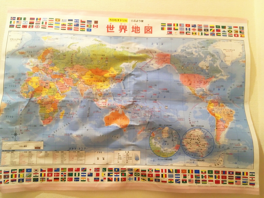 ちなみに我が家のトイレにある、世界地図(子供用)に載っている国は網羅出来ていると思われます。