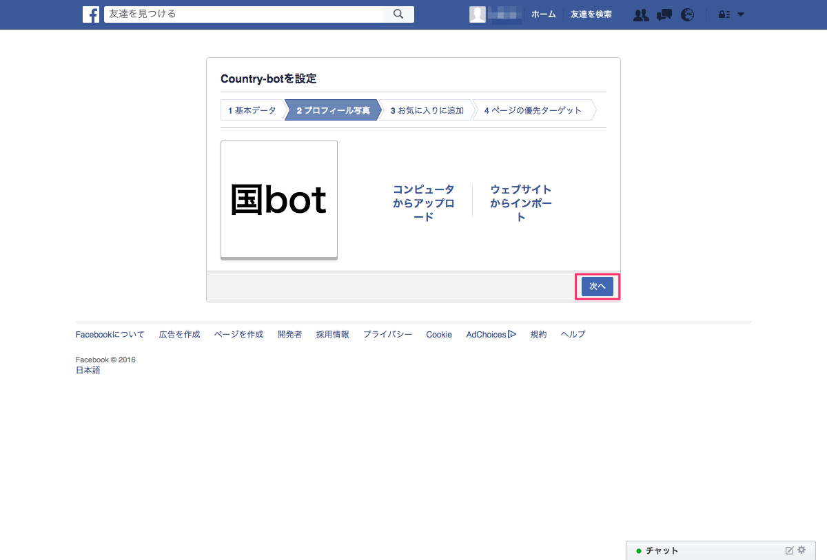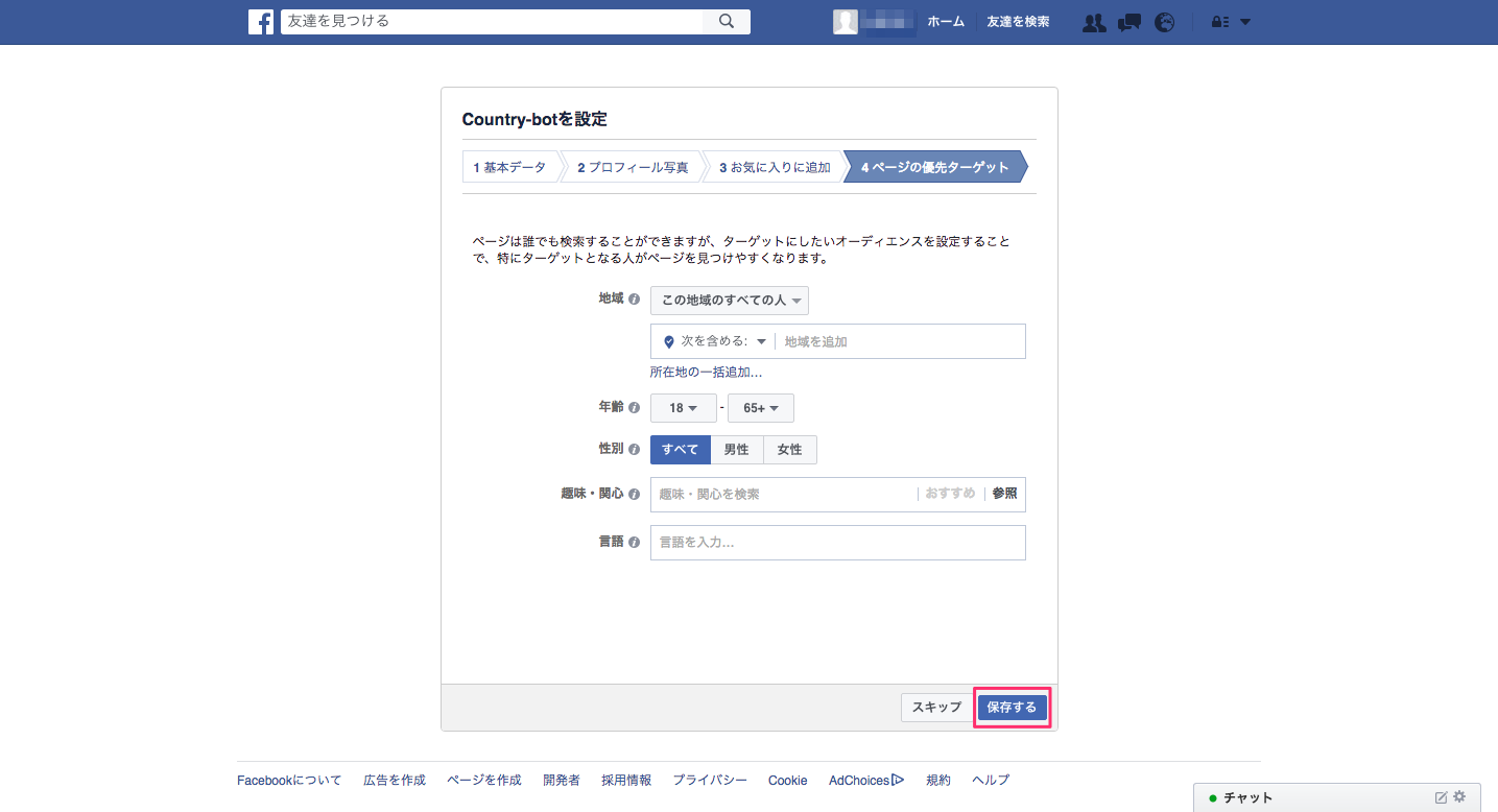 3 お気に入りに追加と、4 ページ優先ターゲットは任意で (スキップを選んでも) 大丈夫かと。最後に